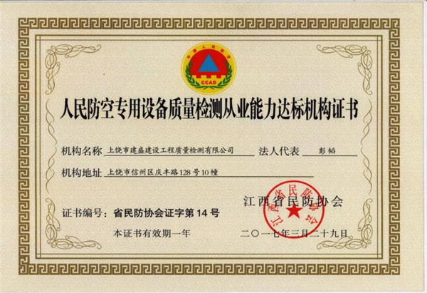 上饒市建盛建設(shè)工程質(zhì)量檢測(cè)有限公司成立于2006年,注冊(cè)資金300萬(wàn)元,前身為上饒市信州區(qū)建筑工程質(zhì)量監(jiān)督站下屬檢測(cè)中心,企業(yè)所在地為江西省上饒市,擁有江西省住房城鄉(xiāng)建設(shè)廳及人防辦頒發(fā)的檢測(cè)資質(zhì),江西省技術(shù)質(zhì)量監(jiān)督局頒發(fā)的計(jì)量認(rèn)證證書(shū)。已開(kāi)展的業(yè)務(wù)范圍有:人防防護(hù)工程及人防防護(hù)設(shè)備質(zhì)量檢測(cè);建筑工程常規(guī)材料檢測(cè),防水材料檢測(cè),鋼結(jié)構(gòu)檢測(cè),建筑主體結(jié)構(gòu)檢測(cè),市......